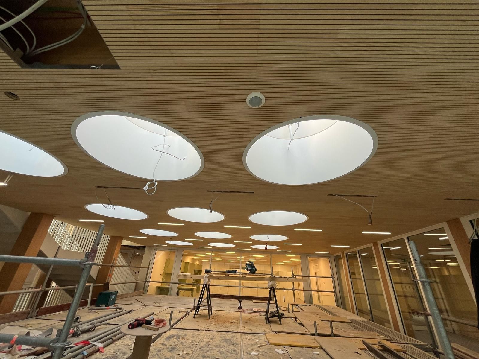Pro našeho klienta jsme realizovali kompletní montáž akustického stropního systému na projektu ve městě Biberach an der Riß. Rozsah prací zahrnoval realizaci nosné konstrukce, zateplení, montáž akustických prvků a finální opláštění, a to v souladu s projektovou dokumentací a technickými výkresy.