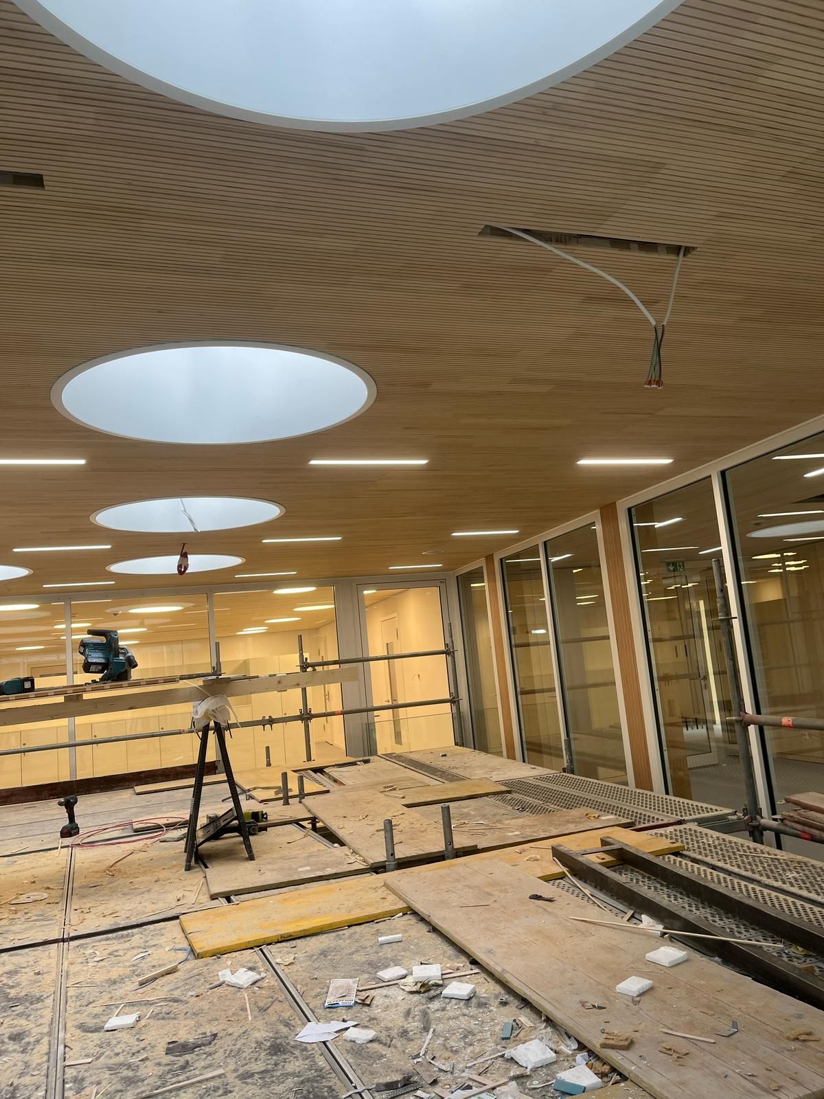 For our client, we delivered the complete installation of an acoustic ceiling system as part of a project in the city of Biberach an der Riß.