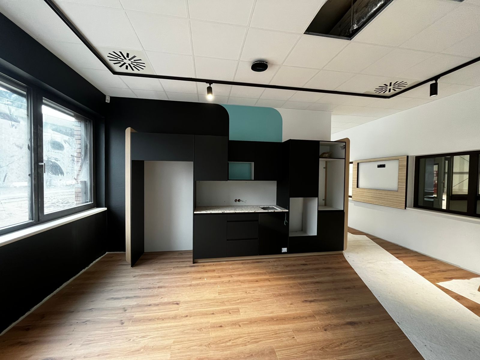 The project scope included the installation of timber acoustic panels, wall and column cladding, as well as the installation of bespoke furniture in accordance with the project documentation.
